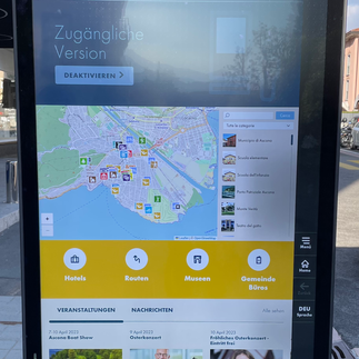 Neu sind auch interaktive Informationstafeln an verschiedenen Stellen im Dorf, die viele Informationen zur Orientierung in Ascona und Hinweise auf Sehenswürdigkeiten sowie Veranstaltungen geben. Eine lustige Idee, um einmal damit zu “spielen”, in Zeiten der mobilen Kommunikationsgeräte für mich aber nicht mehr ganz zeitgemäss.